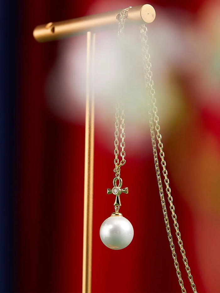 安卡吊坠下方,缀有一颗直径约10mm的贝壳珍珠。