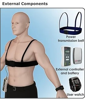 SynCardia、ABIOCOR等全人工心脏有两个塑料腔室,来模仿心脏。每个塑料腔室被一层膜分为两部分,一部分是具有空气的心室而另一部分是具有血液的心房。具有 SynCardia 心脏的患者携带 6 千克的空气压缩机,压缩机连接着穿过腹部的管道,将空气输送到两个心室,通过推动它们的膜以推动另一侧心房的血液泵出。压缩机每分钟120次工作,产生心跳和搏动血流,维持稳定的脉压差[6]。