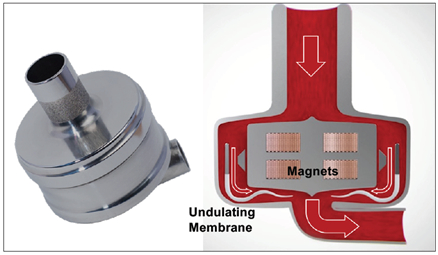 法国CorWave公司开发出一种创新技术来制造LVAD。与以往采用旋转的叶轮来推动血液不同,CorWave公司的技术用上下振动的高分子膜推动血液流动。这种技术的优势在于:一,它对血液中血细胞的伤害较小;二,它能够产生与正常生理情况类似的脉动型血流,产生较高脉压差。