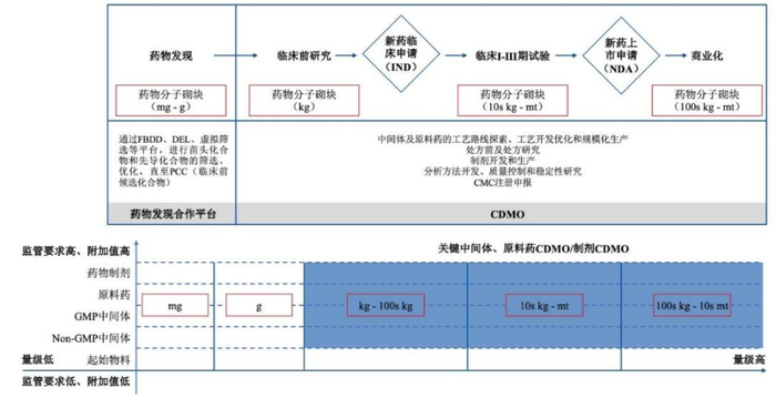 公司为药物研发外包服务领域的领先企业,近年来随着早期项目陆续向后延伸,业务规模持续放量。公司主营业务为药物分子砌块的研发、工艺开发、生产和销售、基于药物分子砌块的药物开发和生产服务(CDMO);按产品分类主要为公斤级以上产品(74.36%)、公斤级以下产品(20.5%)和技术服务(5.12%)。公司近三年营收/净利CAGR分别为35.95%/53.95%,主要受益于公司早期合作项目逐渐实现由项目早期向商业化开发的延伸、公司积极扩大产能以支撑业绩快速放量。整体来看公司值得注意的有: