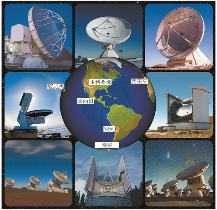 拍摄黑洞照片所用的望远镜及所在位置。