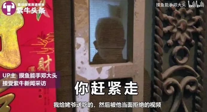 邓大头说,自己拍的视频中,阅读量最高的视频其实是拍姥爷的。那会儿是疫情期间,社区给所有住户发了通知要求大家少出门走动。当时正逢过年,邓大头戴着口罩去给一人独居的姥爷送节礼,没想到到了姥爷家门口,姥爷打开了门,却不愿意打开外面的纱门,姥爷隔着纱门一本正经地对外孙说:“现在啥时候?各家各户都通知了,你来干啥?”邓大头说:“我给你提了吃的来!”姥爷马上接话:“吃的你放门口,一会儿我自己拿!你赶紧走,赶紧走!”