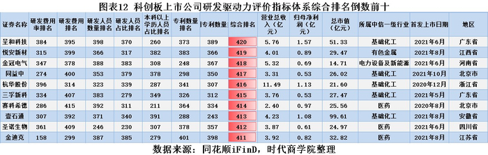 图表12 科创板研发驱动力综合排行榜倒数前十