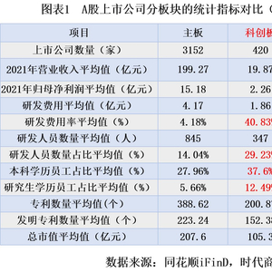 2021年财务数据显示,科创板企业研发费用率平均值、研发人员数量占比平均值、本科学历人员数量占比平均值、研究生学历人员数量占比平均值分别为40.83%、29.23%、37.6%、12.49%,在四大板块企业同类统计指标中均名列榜首。
