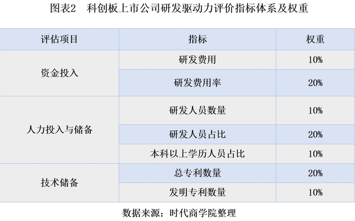 图表2 科创板上市公司研发驱动力评价指标体系及权重