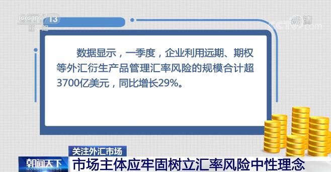 数据显示,一季度,企业利用远期、期权等外汇衍生产品管理汇率风险的规模合计超3700亿美元,同比增长29%。王春英表示,目前企业总体上能够理性看待近期人民币汇率变化,主要交易行为依然理性有序,对人民币汇率双向波动的适应能力明显增强。