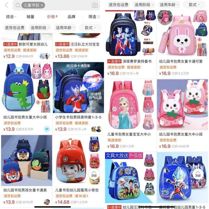 近日,广州王女士给读小学三年级的女儿网购了新书包:粉色双肩带,正面有光滑的涂层,印着鲜艳的美人鱼图案,拉链上还吊着心形挂件。“女儿一眼看中,到货后爱不释手。”王女士说。