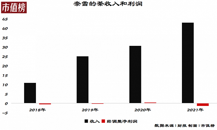 以奈雪的茶为例,2021年实现营收42.97亿元,同比增长40.5%,经调整后净利润亏损1.45亿元,创下了2018年以来最大亏损纪录。