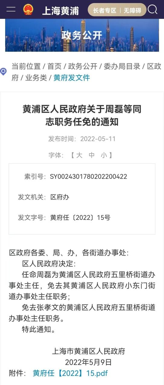 而中科润达事件中传来的最新进展,则是——应居民呼声为“阳性”病人申请复检、揭开误检丑闻的上海五里桥街道办事处主任张孝文被免职,而其免职原因目前不明。