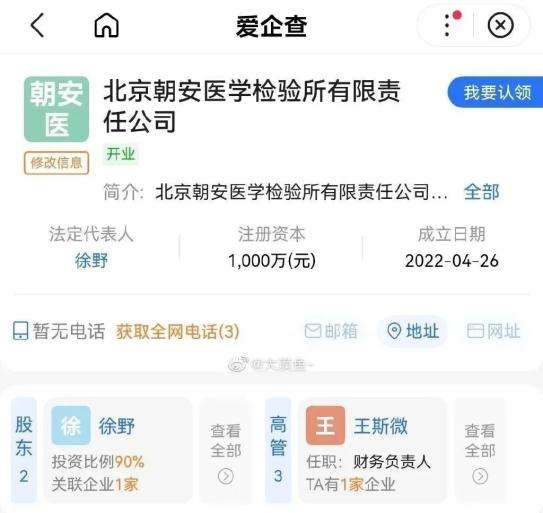 根据网友晒出的核酸检测图片,这家在北京朝阳区宣布提升管控的第二天(4月26日)“踩点”火速成立的公司,在5月6日便已参与北京的核酸检测工作。
