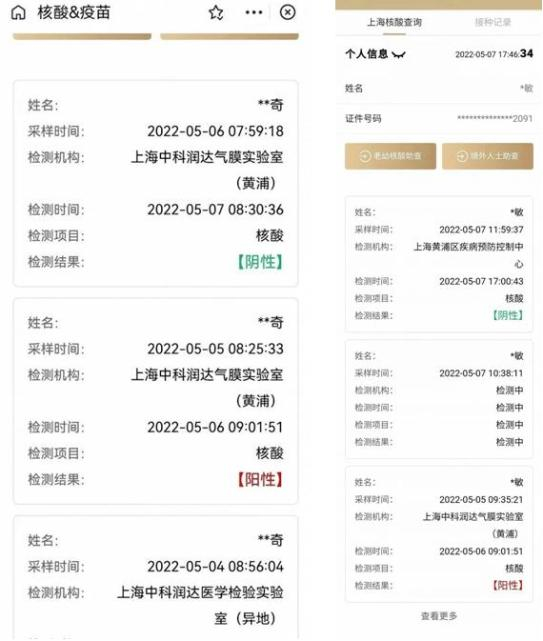 而凤凰网《风暴眼》爆料,还曾有一名业主在5月5日早晨经中科润达气膜实验室采样,次日收到报告结果为“阳性”。但在这一报告生成的2个小时之前,该业主又经中科润达医学检验实验室采样,后结果却显示为“阴性”。以子之矛攻子之盾,检测不准已不言自明。