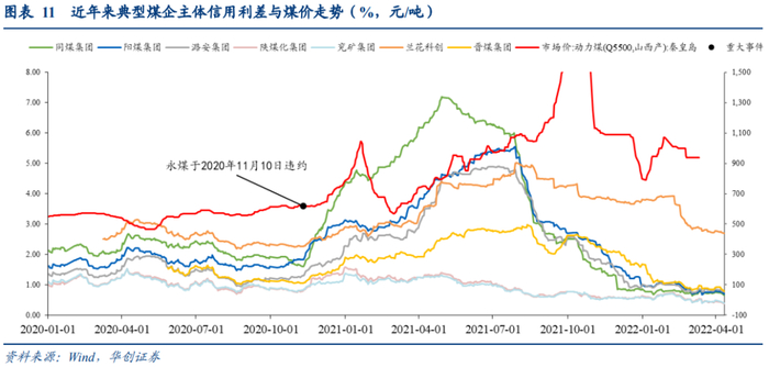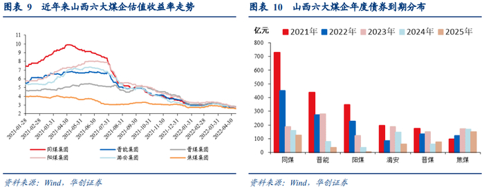 2、适当对资质偏弱的大型煤企进行信用下沉。当前大型优质煤企利差挖掘空间偏薄,陕煤化、兖矿基本已经恢复到永煤违约前的利差水平,甚至更低,当前来看性价比不高;相对之下,山西六大煤企中资质偏弱的同煤集团、晋能集团、阳煤集团仍为信用下沉的优质标的。此外,对于收益率要求偏高的投资者,可关注盈利能力较高、债务负担较轻,但规模与层级存在一定劣势的山西市级煤企兰花科创。