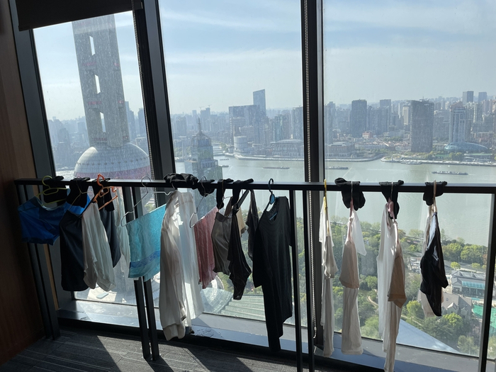 采访完后的某一天,他们给记者发来一张照片——看得见陆家嘴风景的窗口围栏上,挂满了晾晒的衣服。在阳光的照射下,五颜六色。