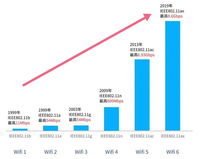 综合来看,相比于之前的WiFi标准,WiFi 6具备 “双高双低”的优势,可连接的移动终端数量、传输速度均得到大幅提升,且延迟更低、能耗更少,可实现高密度移动终端连接、海量数据传输,是万物互联的重要支撑技术。