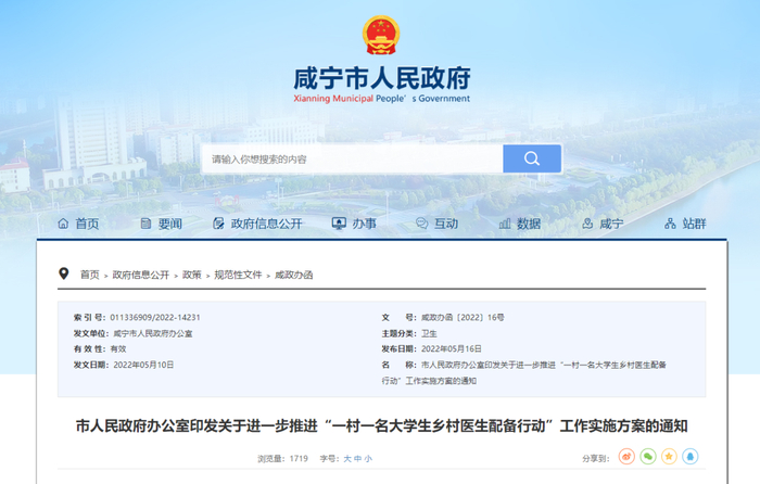 从2022年开始,各地在基层医疗卫生机构人员招聘总量中,每年拿出一定数量事业编制,用于大学生乡村医生招聘使用。