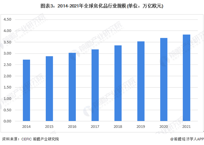 全球危化品规模超过3.8万亿欧元