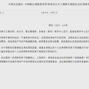 央行、银保监会5月15日发布的通知还指出,在全国统一的贷款利率下限基础上,人民银行、银保监会各派出机构按照“因城施策”的原则,指导各省级市场利率定价自律机制,根据辖区内各城市房地产市场形势变化及城市政府调控要求,自主确定辖区内各城市首套和二套住房商业性个人住房贷款利率加点下限。