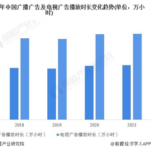 2017年以来,全国广播电视广告播放情况稳中向好,广播广告和电视广告播放时长均呈现出持续增长的发展态势,到2021年,全国广播广告播放总时长为143.4万小时,同比增长1.43%;电视广告播放总时长为226.0万小时,同比增长0.46%。