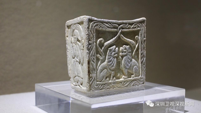 和国有博物馆不同,望野博物馆里的每一件藏品,都是馆长多年来的个人收藏。比如,下面这件北朝双狮纹石枕,正面双狮纹,左右两侧刻有粟特人兜风巾造型,非常罕见。
