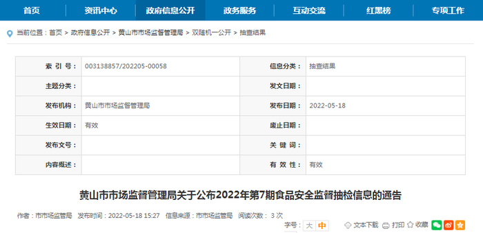| 8 | 黄山山长酒业有限公司 | 安徽省黄山市黟县开发区五黑产业园 | 黄山山长酒业有限公司 | 安徽 | 山长黄山黄酒 | 500ML/瓶;酒精度:15%voL | 2022-01-19 | 酒类 | |
