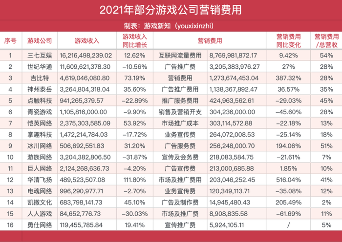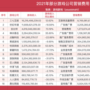 近期游戏新知在关注公司的公开数据(2021年年度数据)发现,2021年在市场新品减少、整体不乐观的情况下,本就高昂的买量支出还在不断增高: