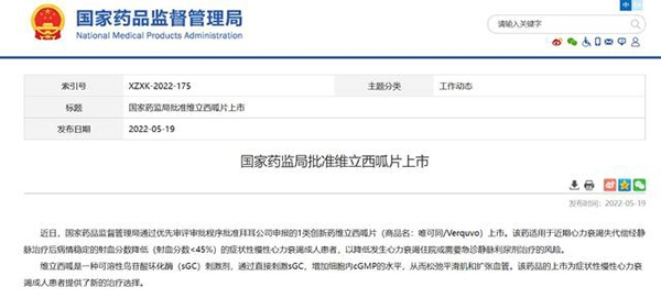 国家药监局批准维立西呱片上市 或将减少心衰患者心血管死亡和再住院风险