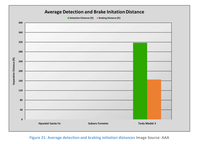 AAA研究员认为,检测与制动之间的明显延迟时间差,表明 Autopilot 在响应方面存在不确定性。
