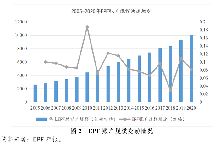 [1]KWAP和LTAT不定期公布年度数据,可得最新规模数据分别为2018年和2019年;EPF定期公布年度数据,可得最新规模数据为2020年。