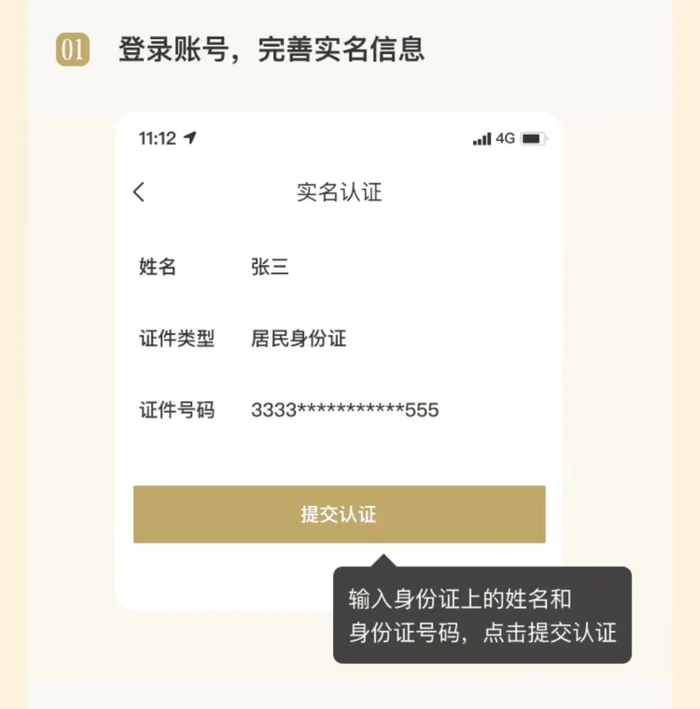 1、登陆账号、完善实名信息。