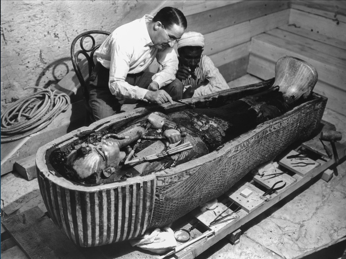 这张照片拍摄于1923年2月,是仅有的两张展示卡特(左)和卡纳冯勋爵(右)在墓中的照片之一。© 牛津大学格里菲斯研究所