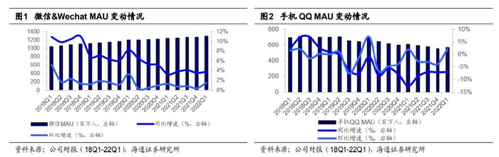我们再来看腾讯一季度业绩:微信MAU同比增加3.8%至12.9亿,QQ MAU环比增加2.1%至5.5亿。视频号新闻、泛知识及娱乐内容日益丰富,加上推荐技术提升,视频播放量及使用时长同比大幅增长。小程序日活跃账户数突破5亿,交易总额保持快速增长,进一步渗透零售、餐饮及民生服务。