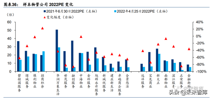 物业管理板块自 2021 年 7 月以来出现持续调整。截至 2022 年 4 月 25 日,恒生物业服务 及管理指数已经自高点下跌 59%。最开始的急跌主要受到七部委监管政策扰动,此后随着 港股市场调整、房地产市场下行和房企流动性问题的发酵,板块持续处于下行通道。
