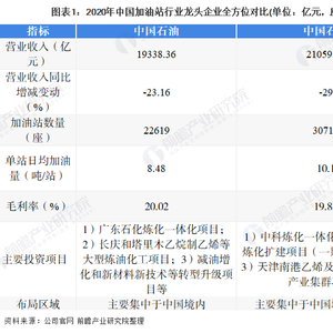 随着中国国民经济的快速发展、交通基础设施的不断改善和机动车保有量的快速增加,加油站已成为民众生活中不可或缺的一部分。目前中国加油站行业的龙头企业主要包括中国石油、中国石化、中国海洋石油等。从营业收入、加油站数量的角度来看,中国石化的营收及加油站数量均较中国石油表现较好;但从毛利率、营业收入的波动程度来看,中国石油表现略强于中国石化。除此之外,两家加油站龙头企业重点布局区域均集中于中国境内地区。