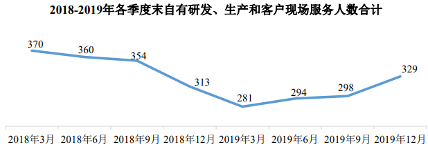 考虑劳务外包工时后,发行人2019年较2018年劳务数量合计(按产能算)下降4.47%、劳务数量合计(按产量算)下降4.12%。发行人在2019年劳务数量小幅下降的情况下收入实现增长,原因系发行人2018年自有人员基数较高,2019年通过增加劳务外包采购的方式优化人员结构,提高用工效率所致。发行人2018-2019年各季度末自有研发、生产和客户现场服务人数情况如下: