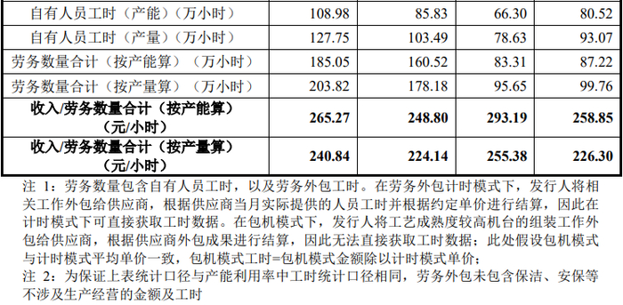 发行人采用“以销定产”的业务模式,由于存在业务季节性特征,如果全部使用自有人员则会在业务淡季造成人力资源闲置,在收入不变的情况下,因业务淡季人员闲置导致工时数上升,收入/工时下降。