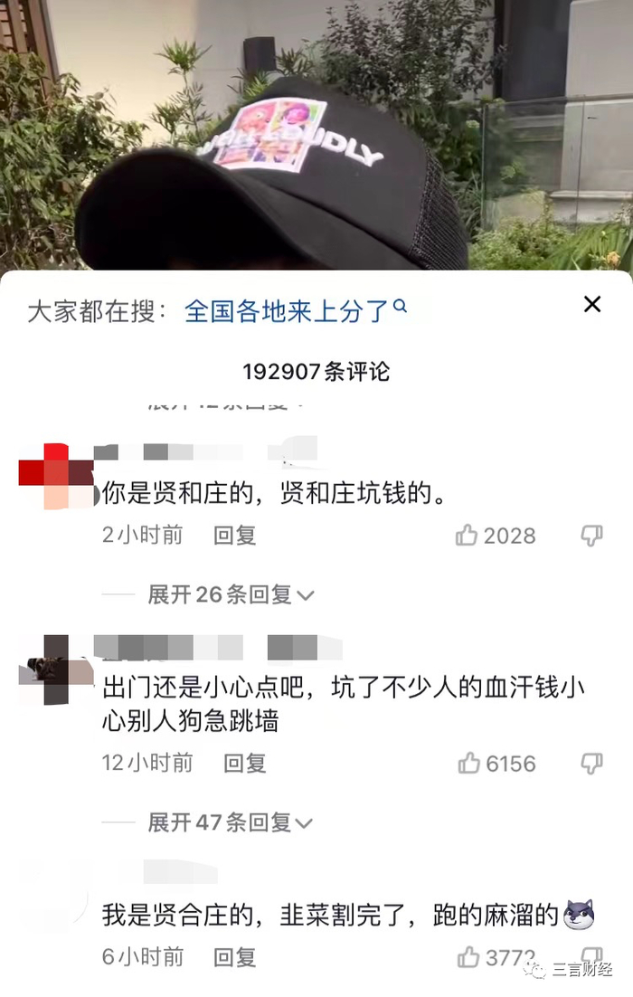 在评论区,有不少网友评论,“你是贤和庄的,贤和庄坑钱的”、“我是贤合庄的,韭菜割完了,跑的麻溜的”。