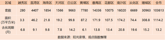 分区来看,4月仅越秀区、天河区去化周期缩短,其余区域去化周期均拉长,其中南沙区、荔湾区、增城区去化周期上升明显高于全市平均水平。