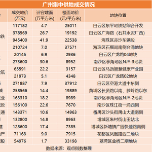 此外,本次集中供地两宗溢价成交地块分别为白云区空港大道中东侧地块和金桥二期地块,分别由中海和兰园控股获得。