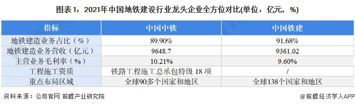 1、中国地铁建设行业龙头企业全方位对比