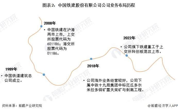 1989年,中国铁道建筑总公司成立;2008年,中国铁建在沪港两市上市;2020年,公司旗下铁建重工于上交所科创板混改上市。