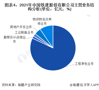 从营业收入角度来看,2021年公司总营收为9361.02亿元,其中工程承包业务占比较大,超过89%。