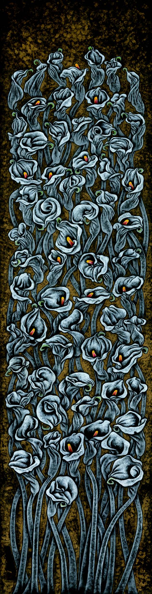 澎湃新闻:而你笔下的花卉,不管是重彩的马蹄莲,还是怒放的向日葵,抑或直白点出“花尸”的月季与残荷,既有西人的技法,也有国人的意蕴,甚至还带有些东瀛的侘寂和物哀之美。能否谈谈你作画的审美旨趣?李保田:我没有经受过专业的绘画训练,所以我的绘画技法不是正统的路子。我绘画的形式都是自己瞎琢磨的,而绘画史上的那些特殊人物,又有几人是在形式上循规蹈矩的?我宁可叛逆、独特死,也不想守旧、平庸生。