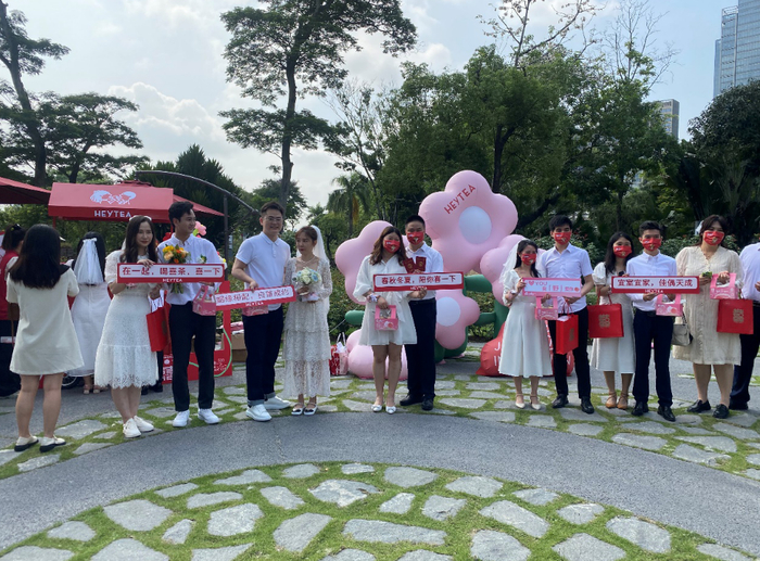 喜茶还与成都市锦江区合江亭婚姻登记处联合,为当天参加“锦遇良缘 浓情相伴”集体婚礼的新人和嘉宾们提供赠饮,见证一场集体的“大喜之日”。