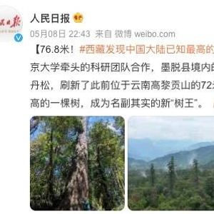 最近,有关树木的两项纪录被刷新!在墨脱县境内的背崩乡格林村记录到了一棵高达76.8米的不丹松,是目前中国大陆已知的最高的一棵树。