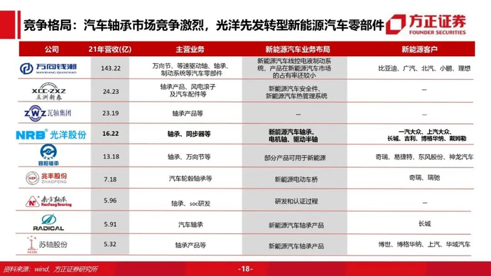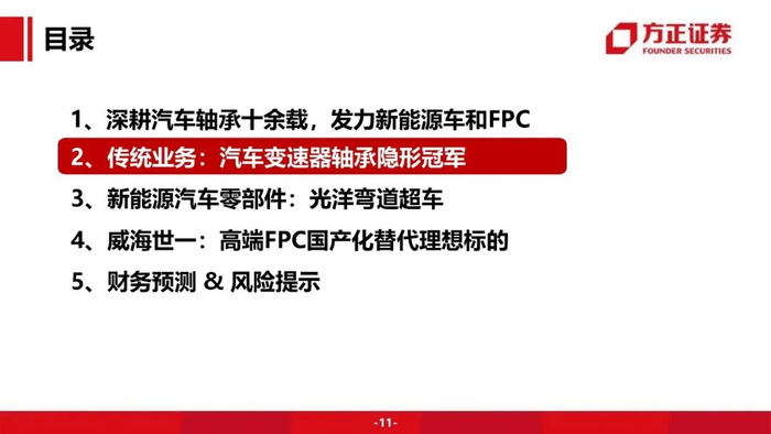 1.汽车轴承国产替代。光洋是汽车变速器轴承领域的隐形冠军,随着国内汽车工业技术的赶超和新能源汽车的快速发展,供应链国产化趋势明显,汽车变速器轴承国产化替代空间巨大。2.新能源零部件弯道超车。随着新能源汽车自主品牌崛起,受益于电驱动总成部件的技术先发布局优势,光洋所能获得的相关市场份额将快速提升。3.FPC困境反转,曙光在即。光洋2021、2022年Q1业绩承压主要源于线路板业务,原因是完成威海世一收购后,厂房和设备的建设前期需要大量资金投入;并且在产能爬坡的过程中产品无法规模经济,导致毛利率低。但预计公司在2022年完成前期工厂建设和产能爬坡后,FPC业务将迎来反转,迅速提升公司营收和毛利。