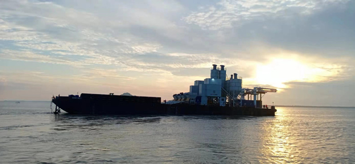 马来西亚鲁巴跨海大桥项目大型水上混凝土生产平台成功下水