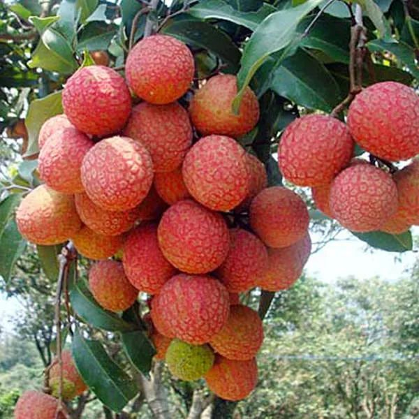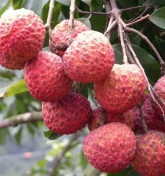 桂味荔枝因有桂花味得名,又名桂枝、带绿。桂味荔枝植株高大,500年生树高16米,冠幅13米,主干周径2.3米,是荔枝优质的中熟品种,也是重要的出口商品水果。桂味为广东省栽培分布较广的优良品种之一,高州、增城、东莞、新会等地种植较多。果近圆形,中等大,单果重20.2克至22.0克,果顶浑圆,果肩平,果梗细。果皮鲜红,果肩有墨绿色斑,果肉乳白色,肉厚质实,清甜多汁,有桂花香味,多为小核,品质风味极优,6月下旬成熟,是优良的鲜食品种。