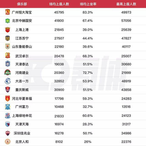 而在场均上座率方面,广州恒大淘宝以83.3%力压群雄,河南建业则以72.7%位居第二名。横向对比相关数据,中超球迷入场观赛的热情,与英超、西甲、德甲、意甲等欧洲顶级联赛绝对有得一拼。