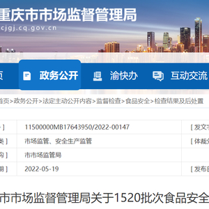 中国质量新闻网讯 2022年5月19日,重庆市市场监督管理局网站发布关于1520批次食品安全抽检情况的通告(2022年第11号)。据通告,标称重庆市君琇酒业有限公司生产的1批次“君秀”竹黄酒,酒精度不符合产品执行标准要求。检验机构为重庆市食品药品检验检测研究院。