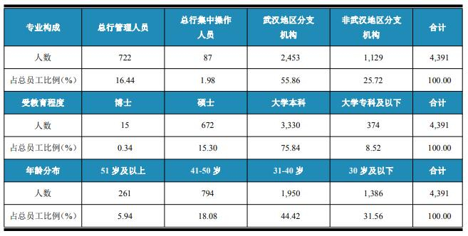 2021年末,汉口银行共有员工4391人,其中,含派遣员工313人。